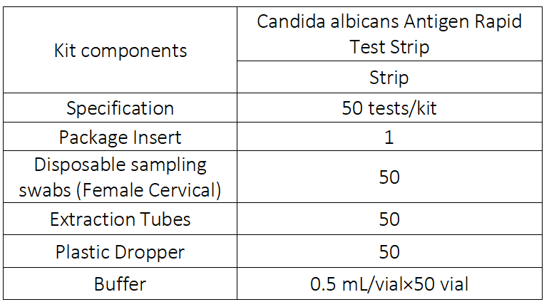 Kit components: Candida albicans Antigen Rapid Test Strip