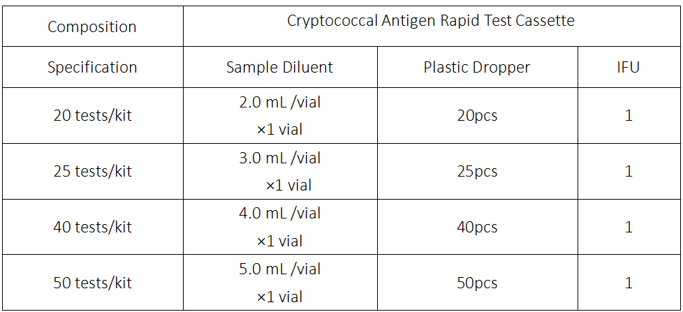 Kit components: Cryptococcal Antigen Rapid Test Cassette