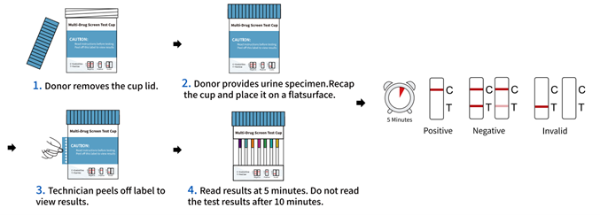 The Multi-Drug Screen Test Cup is a rapid screening test that can be performed without the use of an instrument for the qualitative detection of AMP(Amphetamine), BUP(Buprenorphine), BZO(Benzodiazepines), COC(Cocaine),ETG(Ethyl Glucuronide), FYL(Fentanyl), K2(Synthetic Cannabis), MDMA(Ecstasy), MET(Methamphetamine), MTD(Methadone), MOP(Morphine), OXY(Oxycodone), THC(Marijuana), TML(Tramadol) in urine.